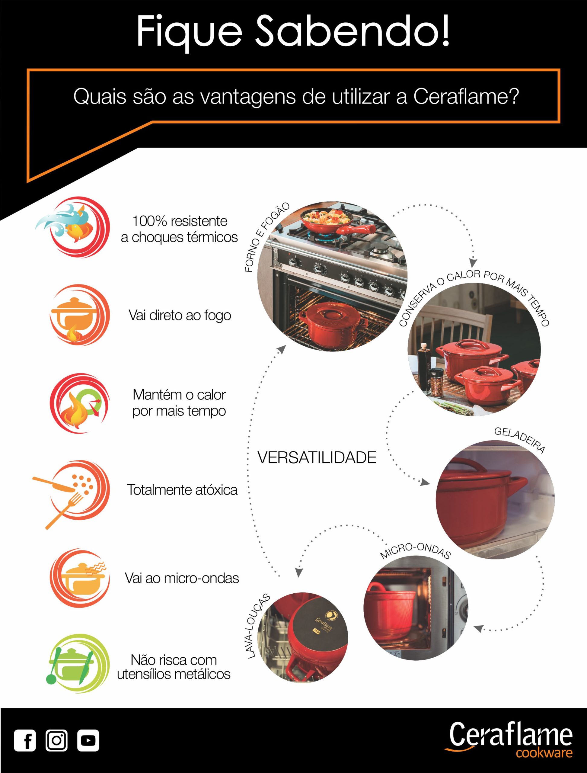 - Resistentes a choques térmicos, podendo ir do freezer direto para o fogo ou micro-ondas.