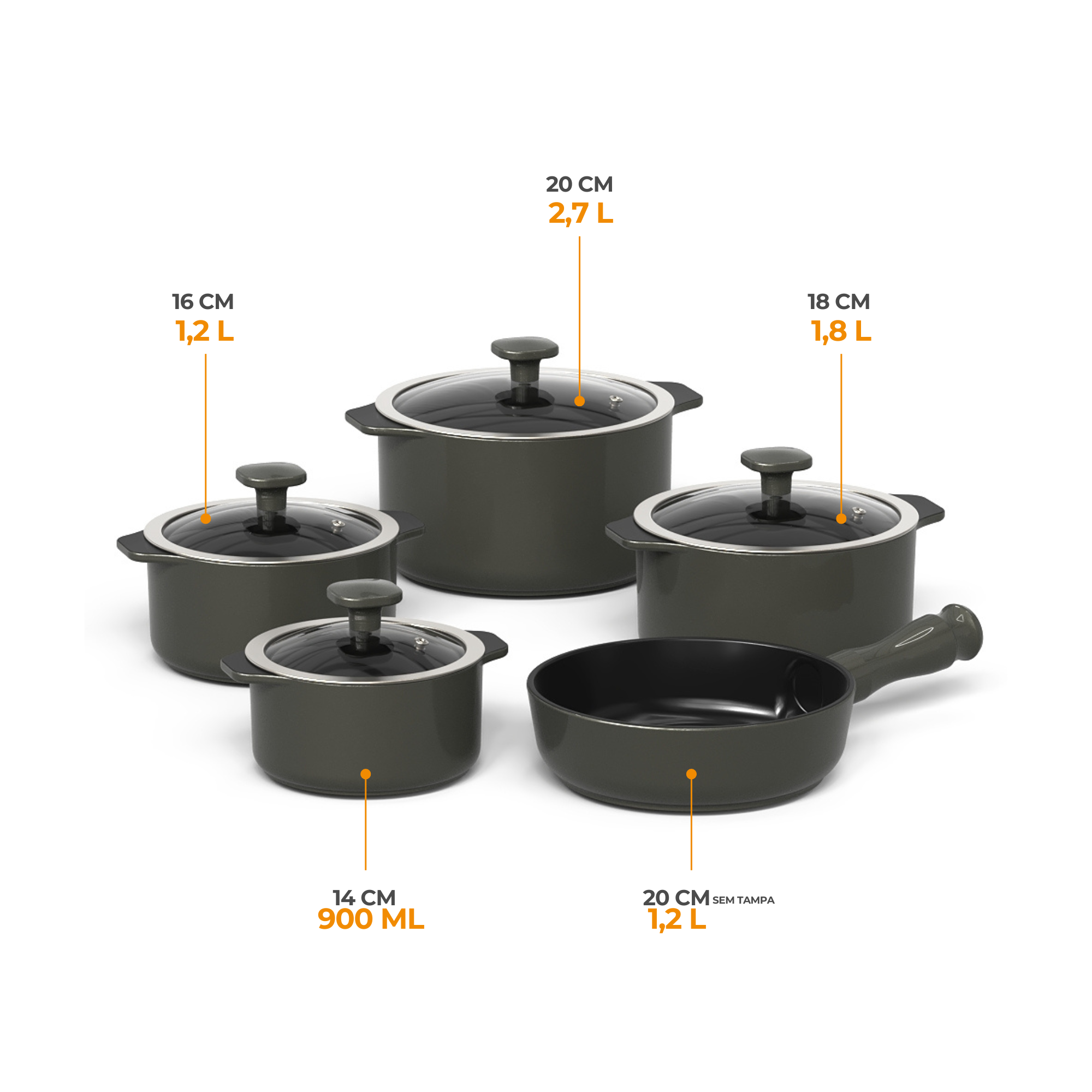 Jogo de Panelas Ceraflame Slim 5 Peças – Onyx Gray